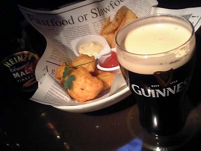 はるか昔?に旅行したイギリスを思い出しながら、ギネスのハーフパイントと、フィッシュ&チップスを注文。