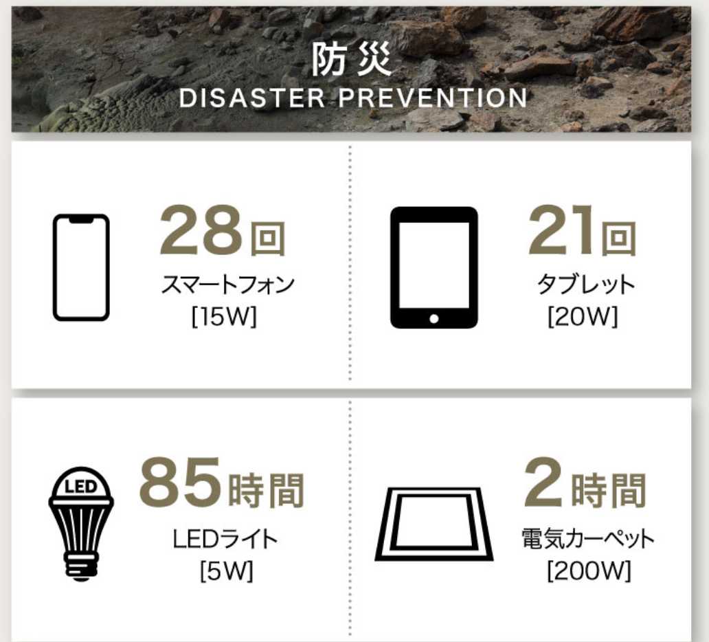 「災害時に停電しても安心。スマホや照明が十分使えた」