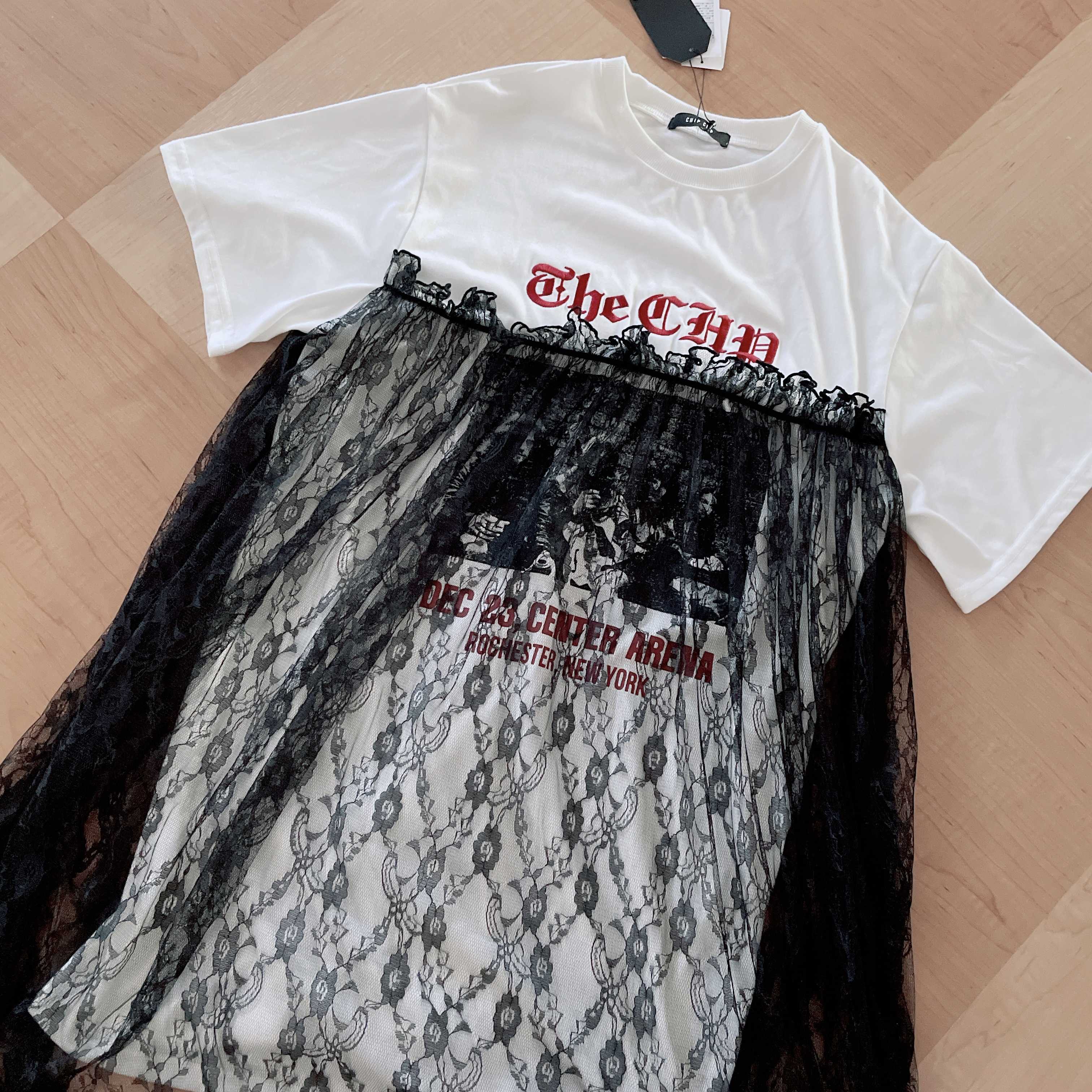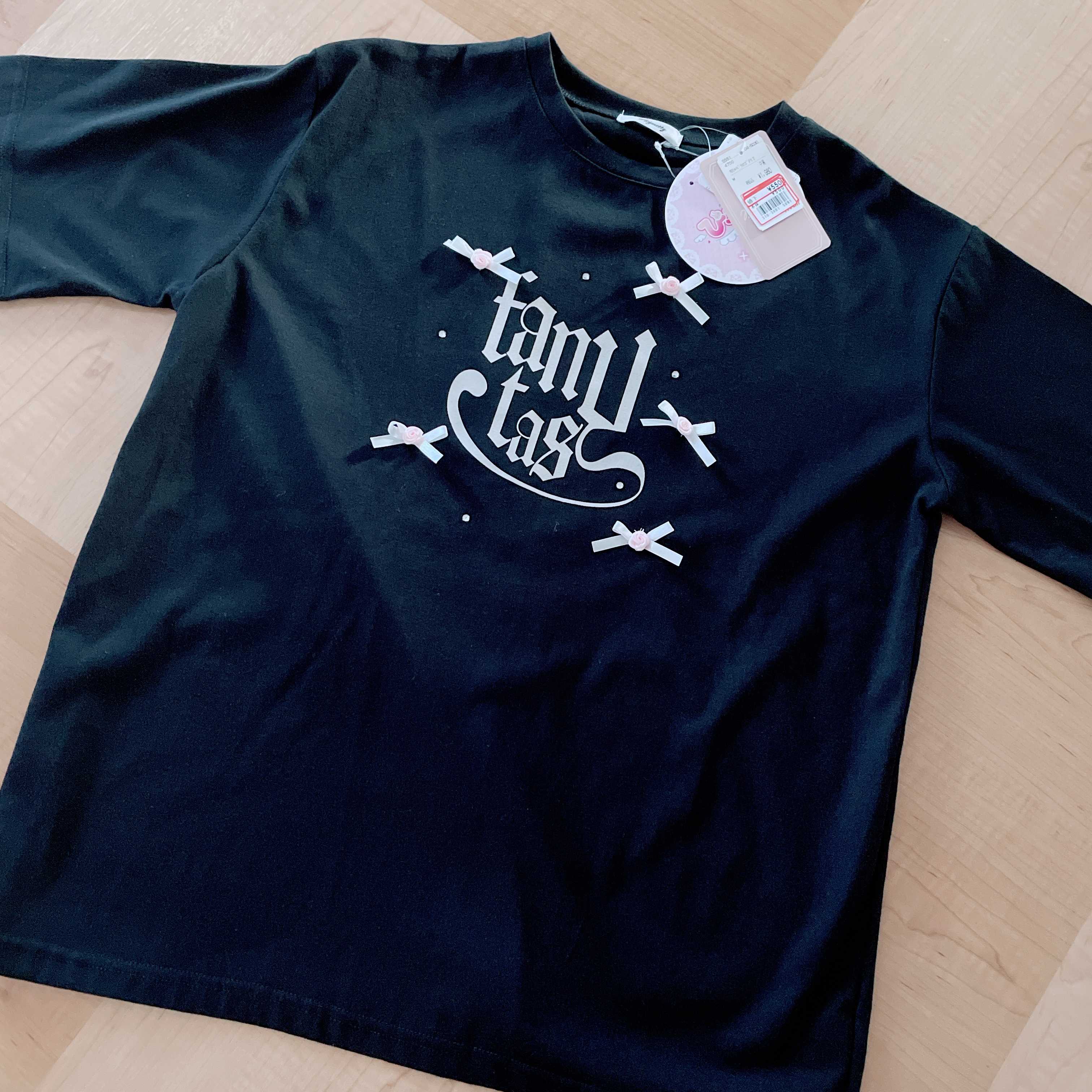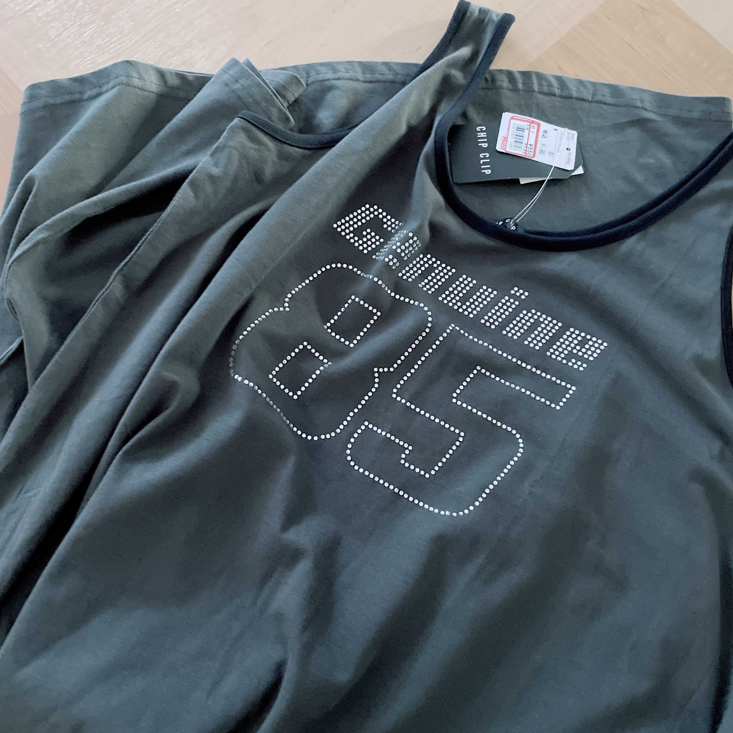 文字部分は刺繍で、ワンピ丈で太もも隠せるので普段着用に。