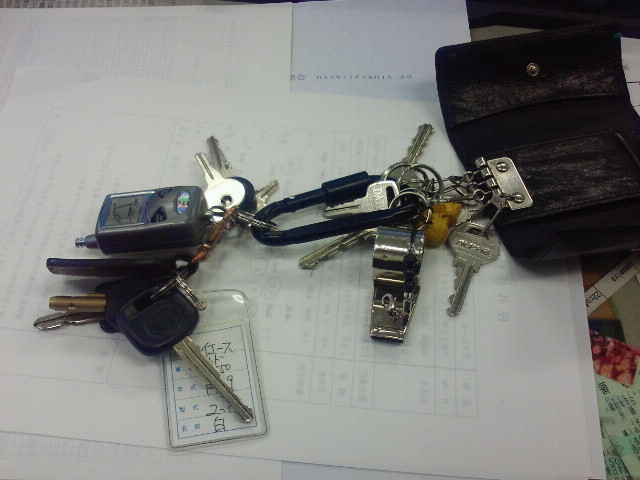 今まで使っていたキーホルダーが悲鳴を上げている。キャンピングカーになってから、おびただしい数の鍵が増えたからだ。車の鍵、バックトランクの鍵、給水口の鍵、トイレタンクの鍵、トイレ排水の鍵、遠隔操作(エンジンのスタート、ストップ、ロック、アンロック)のリモコン。加えて最近取り付けた”盗難防止装置”のコントローラー。いつでもレフリーができるために、危険回避のためにホイッスルも持っているので、鍵が鈴なり状態。ああ!!いいキーホルダーはないかなぁ!!牢獄のリングみたいのがいいのかな?