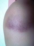天気予報通り、今日はかなり暖かかったようで、道路の雪が融けまくりです。これで、明日あたり低気圧がやって来て気温が下がると、またまたスケートリンクが出来ちゃいます。氷と言えば、この前転んで出来た青タンです。 いやぁ~、久しぶりに出来ましたよ、こんなの。夫に「何、撮ってんのよ(そんなもん撮るなよ)」と、言われましたが、あまりの見事さに、記念に残しておこうかと・・・まあ、青タン程度で済んだから良かったようなものの、(その割りに、大騒ぎしましたが)知り合いが、転んで腕の骨にひびが入って全治1ヶ月とか・・・。皆さんも、転ばないように気をつけて下さいね。話は変わり、今日、息子との散歩での出来事。いつもの散歩コースを3人(正確には2人と1頭)で歩いておりますと、とある家から黒い大きな犬が走り出てきて、(犬種はよくわかりませんが、図鑑で見る限りグレイハウンドが近い)我が家の黒い息子を蹴散らしました。突然の出来事に息子、慌て驚き「きゃうきゃうきゃう~~~」と、夫の足の間に隠れました。しかし相手がいつも散歩途中に居る犬だとわかるとなにすんねんと言わんばかりに「わんわんわん」でも、夫の足の間から・・・この黒い大きな犬くんは、だいたい我が家の散歩時間帯に居る事が多いんですが、何日か前に会った時は、たまたま私が息子のリードを持って、夫は私たちの7~8m程前を歩いていました。息子は、黒い大きな犬くんを見つけるとピタッと止まり、後ずさり。夫が居る方に行きたいけど、行けなぁ~い何とも悲し気な顔で私を見上げました。多分、息子的に、私では頼りにならないと思ったのでしょうね。そんな事があっての今日の事でした夫が一緒だと、一応強気なんですかねぇ本日の散歩記録距 離 2.1km歩 数 2643歩所要時間 40分消費カロリー 120kcal日記記入率 67.3%