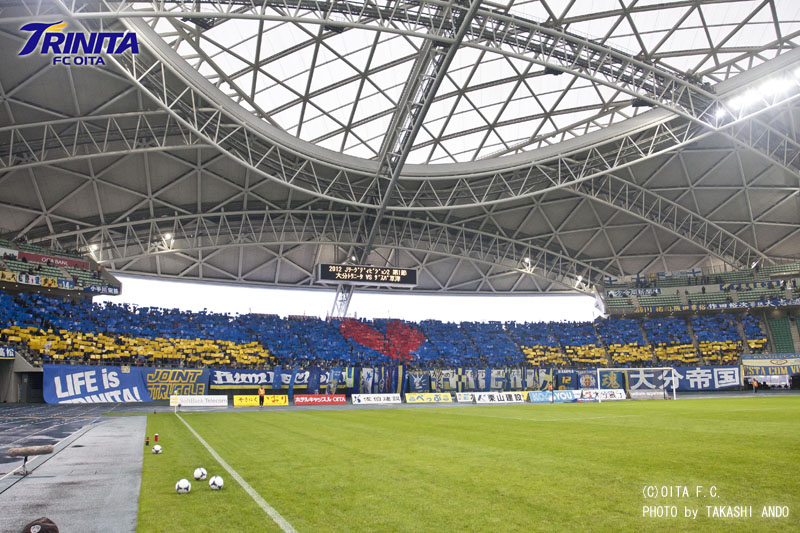 喜びは一瞬。厳しい世界だと実感できた。逆に悲しみも一瞬にする事が出来る。それがサッカーである。今日の温泉ダービー。J2第1節 大分トリニータ(別府温泉)vsザスパ草津(草津温泉)結果: 2-3今日は開幕戦でした。最高なコレオから始まり、新加入メンバーを楽しみにキックオフ。立ち上がりは、ボールが落ち着かず。シュートも打てずに、たった2本で前半終了。カードも互いに多くでました。審判が厳しいのか、選手が悪いのか。ただトリニータのポゼッションは、明らかに悪かった。結果的に相手の枠外シュートに助かって前半は0-0で終わりましたが。後半は草津の途中交代で入ったへベルチの存在感がデカかった。恐ろしい決定力で圧倒。トリニータもがむしゃらなプレーで得点するも。へベルチがやりおる。いやぁー草津相手に厳しい現実を叩きつけられましたね。が、しかし。収穫もありました。トリサポなら分かるでしょう。コテ(小手川)のJ初ゴール!!待ってました。ずっと怪我で出場できず。サポーターはずっと待っていました。復活ゴール。この試合、勝ちたかった。コテにヒーローインタビューをして欲しかった。さて。メンバーを見てみましょう。ボランチの村井と宮沢。村井は予想通りの活躍ぶり。ただあのフリーキックは、大きく外し過ぎでしょww宮沢は・・少し消極的だったな。迫力が足りない気がしました。そしてデカ(森島)とサンペー(三平)は、あまり持ち味を出せてなかったですね。まずデカがタメを作っても攻撃的な状況が少ない。そしてデカになかなかボールが集まらない。サンペーの抜け出しも、ほとんど見られなかった。というか守備ばかり見た気がします。韓国組は攻撃に絡んでましたが、ちょっと決定幾が作れずに終わった気がします。試合最後になると特に攻めていたわけではないんですが、がむしゃらに得点しようと気持ちが見れました。あとは連携がうまくいく事を信じましょう。コテは良い動きが出来ているので、これからが非常に楽しみです。次節の栃木は直接見に行くので、勝ちましょう!!!グリスタで勝利して、波に乗るぞ!あとは、高松、西の早期復活を望むのみ!!!!!!!!!まだまだ始まったばかり!!昇格を諦めるは早すぎます!!勝つよ!まじで勝つよ!ありがとうございました。byおにトリ