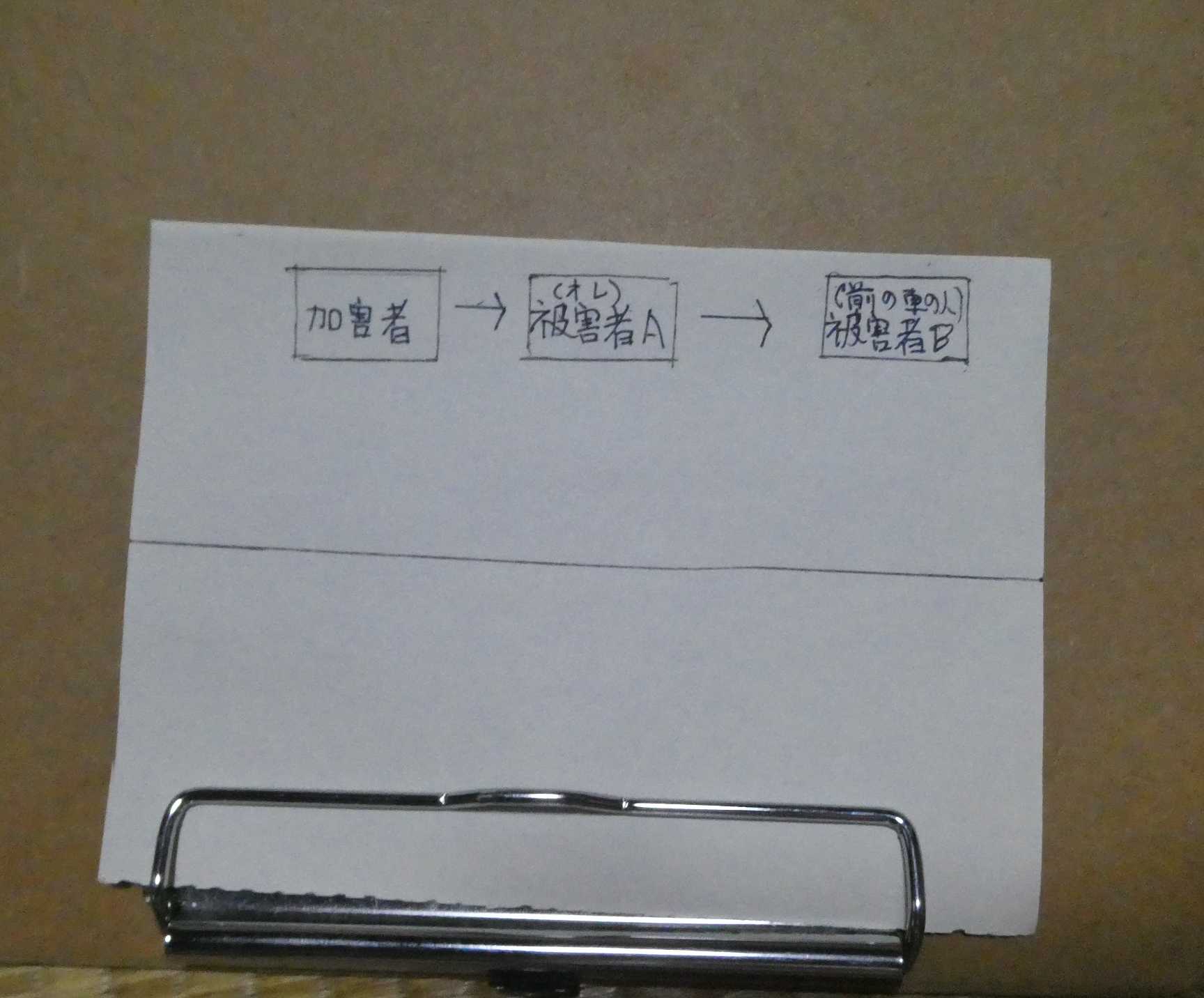 8月13日休みのんびりとカミさんとドライブ。2人で美味しいうどんでも食べに行く途中でした。お盆と言う事もあって、道は、大渋滞。 車は、ノロノロ。突然、後ろの車が、真後ろから衝突してきた!ガチャン~~(アクセルとブレーキを踏み間違えてしまったって)自分の車は、衝撃で前方に跳ぶ。前の車にぶつからないように、咄嗟に、ハンドルを切りブレーキをかけたが、間に合わなかった。ポコッと前の車に衝突少しキズがあるなぁ~で~加害者と自分(被害者A)と 前の車の人(被害者B) の3人は、現場検証をやってもらうため警察を呼んだ。車は、道路の端に 事故に遭った状態で止めた。しばらくするとポリ4人が到着。現場検証は、加害者から 自分(被害者A) 前の車(被害者B)の順で個別に行われた。最初に、加害者Aのところにアクセルとブレーキの踏み間違えで追突事故を起こしたと言ったのだろうな。次、自分の車(被害者A)のところのカミさんと2人で、エアコンをかけて車の中で涼んでいた。ケガは、ありませんか自分は、ありませんよと言う。カミさんは、痛みがあるって ポリに免許証と車検証を見せた。事故の状況を説明したいと思い、ドライブレコーダーを見せましょうかポリは、ヨカヨカと手で合図 自分ちの近くのオートバックスで売ってた一番高い自慢のデジタルミラードライブレコーダー見て欲しかったな最後 前の車の人(被害者B)仕事が忙しいようで、免許証と車検証を見せてサッサと帰った。めっちゃ簡単に現場検証が終わったな。加害者は、任意保険に入っている。車の修理さえちゃんとやってくれればオレは、それでOKカミさんは、後から痛みが出たらいけないと、病院に行ってレントゲンを撮ってもらった。診断結果 脊髄に損傷はありませんから問題なしですと言われシップをもらって安心翌日、すっかり痛みが消えたようでOK加害者も被害者Bもオレも良い人で安心。だが、違った。。。交通事故②に続く