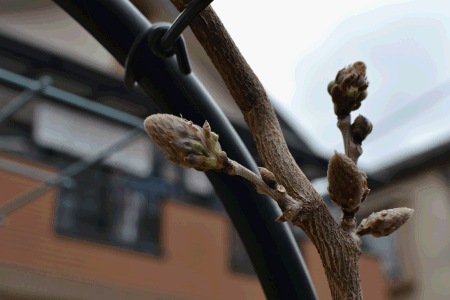 その昔、地元のイベントで木の枝のような細さの藤の木を¥1000ーで購入し、お庭に地植をしたさ~。その後2年間は根を地に馴染ませながらツルをフラワーアーチに絡ませつつ藤棚っぽく仕上げ、お花が咲かないのを残念に思いながら過ごしてきました。が、しか~し!今年ついに念願の蕾(つぼみ)が出てきました。キターーーー!嬉しい~。今までは園芸店やご近所さんの家・そして大好きなあしかがフラワーパークで恨めしそうに眺めてましたが、今では毎朝ウットリ眺めて会社に出勤してます。毎日しっかり成長しているのがわかるぐらい大きさが変わるので、メッチャ嬉しいですよ。このままいけば今月の中旬に花が咲き始めるそうなので、あの花房が我が家で拝めそうです。初花房・・・楽しみや~。(爆)