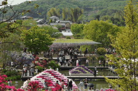 今年もあの場所に行って来ました。その場所は栃木県足利市にある「あしかがフラワーパーク」です。おいらはここの藤を見て自分の家にも藤を植えたんですよ。そんな今日は天気が良いせいか、お客さん・咲いているお花が今までで最高でした。この時期の園内はいつもとは違い、ツツジ・ルピナス・そしてメインの藤が咲き乱れそれはもう最高~!!満開に咲いた花が目と心を癒し、フワッと香る気品のある香りは安らぎと笑顔を与えてくれます。日頃のストレスもアッという間に解消です。カメラもここに来ていい感じに撮影できるようになってきたので、撮った後の絵が何となく見とれちゃいます。去年は夜のライトアップを見れなかったので今年は・・・と思いましたが、昨日の飲み会のダメージがジワジワと現れてきていたので、今年も見ずに帰宅しました。来年こそは・・・。そんな今回も満開の大藤に出逢えたので良かったです。