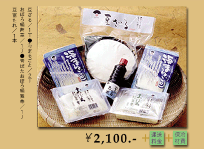 「真心セット送ったからね」を朝九時にスカイプ受けたら、何やら窓下でトラックの止まる音。まさか。。。ではなかったです。届きました! 実況生放送をしているようで面白かったです。早速梱包を開けて見ますと上に‘おぼろ絹舞華’と‘青ばたおぼろ絹舞華’下には‘海まるごと’が二丁。一丁は‘おぼろ絹舞華’の下にあり、‘豆ざる’、写真の‘豆富たれ’はビニールの袋から出したのを撮っています。「きぬ」の‘海まるごと’と‘おぼろ絹舞華'と‘青ばたおぼろ絹舞華’は梅雨時には冷奴が美味しいので生姜と大葉の薬味に万能ねぎをたっぷりトッピング。冷やし中華にも具材で使用したりして頂き、「もめん」の‘豆ざる’をたらばかに缶と鶏がらのスープで煮て片栗でとろみをつけて卵白をあわ立てのをのせて「ふわふわかにとうふ」という料理でいただきました。一度は食べたかった扇田食品のおとうふ! まろやかでこくがあって噂以上でした。感謝。 -----------------------------------------------------埼玉県に住むAさんから、「真心セット」が届きましたと報告がございました。美味しいと噂のお豆富を是非、味わってみたいとの念願が叶ったようです。ここに報告いただいた写真とともにご紹介させていただきました。