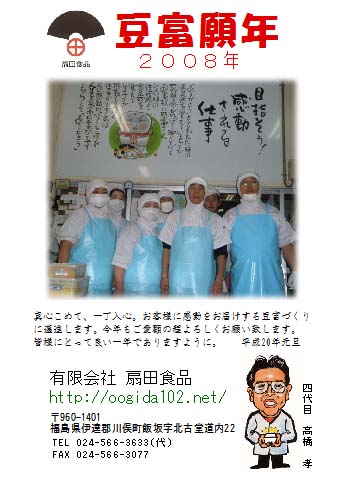 「知ってください・買ってください・まるごと福島の食」と銘打って第3回福島県主催の『ふくしま食品・食材商談会』が22日・23日(昨日と今日)郡山市のイベント会場ビッグパレットにて開催されています。県内112団体のブース出展のひとつとして参加しています。一般生活者向けでなく流通業並びにホテル、旅館、飲食業など業務用に食品食材を必要とされるかたのマッチング機会を提供する商談会です。こだわりのおとうふ・あぶくま山系湧き水造りの扇田食品をアピールする場としての参加です。各社の自信作そして興味ある食材がたくさん並んでいます。一般の方々への販売日なども1日位考慮したならさぞや喜ばれる楽しいイベントになるだろうと思われます。おとうふを種類ごとに食べ比べての試食できるようにしてございます。今日は豆乳とうふ鍋を提供する予定です。