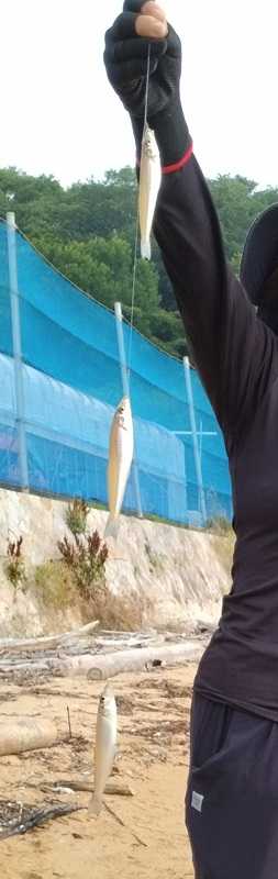 10日は西方面のキスの調査に奥さんと出掛けました~♪現地に到着すると~ちょっと東風が吹いていたが、釣りには大丈夫なので「頃合いの風!」と開始 ⇒すぐにプルプルッとアタリが連発 ⇒しかし、弱いアタリなので「サイズが小さそう」と思いながらリーリング ⇒上ってきたのはこんなサイズ丁度、モーニングタイム&満ち上りの潮流の影響か?アタリが頻発 ⇒こんな事も数回引きに変わると、アタリが遠のく ⇒そこで~こちら方面の孫を連れていく予定のPチェックに移動🚙💨再開 ⇒アタリは15~35mほど沖で頻発にある ⇒「孫にもってこい」と思いながら数投する ⇒途中でいいアタリ ⇒そのままサビいていると、引きが違う ⇒「ハネか?」と思いながら走られたときに対処するためにリールのストッパーをオフにする ⇒予想どうり手前に寄せてくると横走りする ⇒リールを逆転して対応 ⇒波の波長に合わせて砂浜にずり上げたのは予想どうりのハネでしたε-(´∀`*)ホッ ⇒調査は & ι(´Д`υ)アツィーのでこれを機に納竿 ⇒結局、クーラーの中身はこれだけでした帰宅後に下処理 ⇒忙しかったので翌日、空揚げ用に真空パックをして急速冷凍保存早朝に収穫して塩茹でした枝豆もこの調査で孫たちを連れていくキスPは東西のどちらも〇なので後はお天気次第です。因みに『スポーツ報知新聞』に掲載される前回のキスの記事は7月22日(火)に決定しましたので宜しくお願いします。