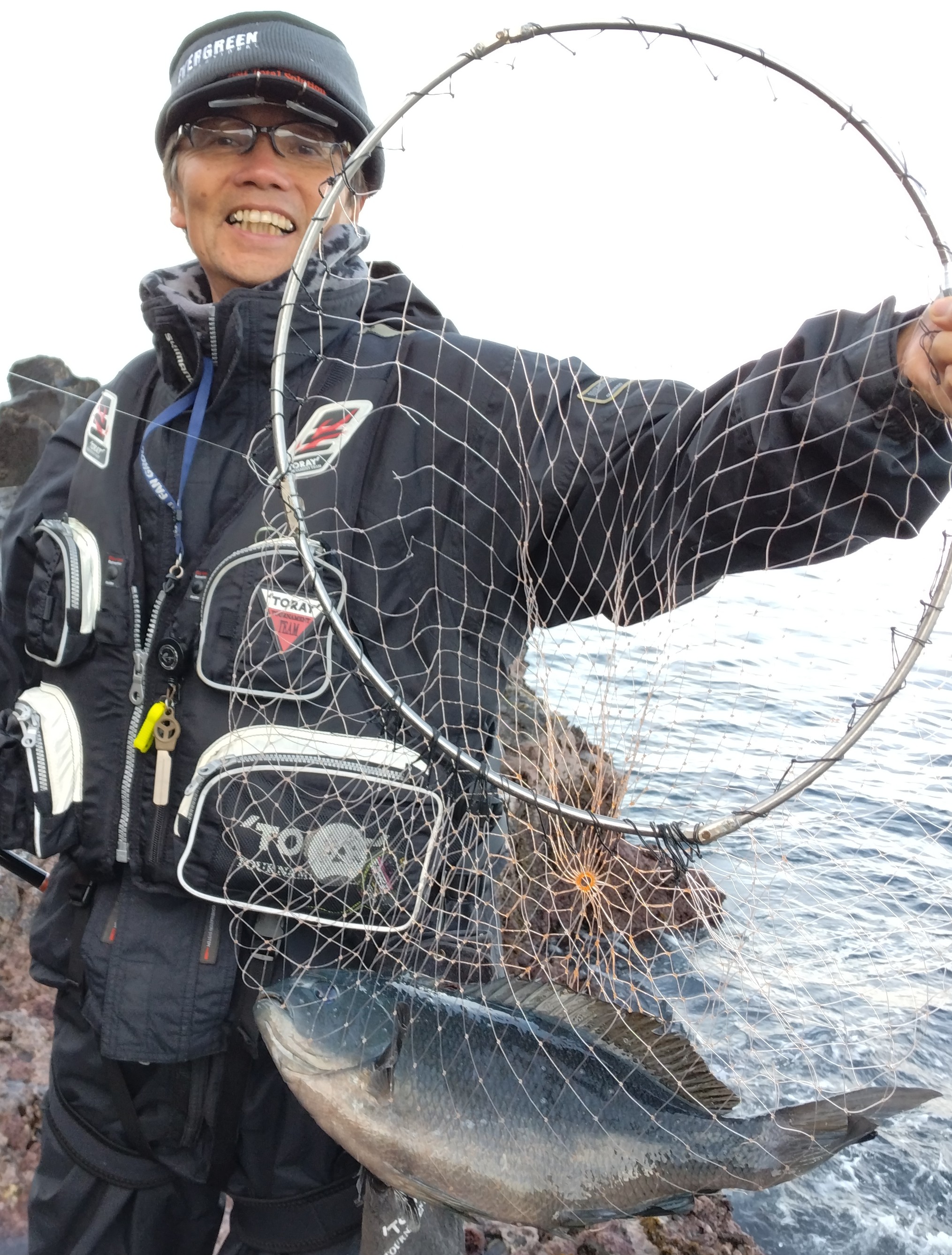 1月中旬の舞鶴サワラは前日、前々日と爆釣で早上がりだったので「頂き!」と勇んで出撃したんですが~当日は行方不明・・・(´・ω`・)エッ?その上、保険のタチウオもノーバイトでヒットしたのはこの君、1尾のみでした・・・( ノД`)「次は」と天気予報をチェックしていると1月30日がいい感じ ⇒何釣りに行くか悩む(-ω-;)ウーン ⇒・舞鶴サワラはいまだに行方不明。・宇和海の寒グレは激渋。・隠岐の島は天気が微妙なので~~年末のブリジギングのリベンジに決定 ⇒午前7時、この船で🚢💨長時間のクルージングでこのエリアへ「よい反応がありますからハイどうぞ」のアナウンスでジグを投入 ⇒開始早々に次々とヒットして私にも ⇒抜き上げたのは?㎝級の〇ズだった ⇒それからは〇ズ祭り ⇒「このサイズばかりか?」と思っていると、他のアングラーに待望のGOODサイズがヒットした( ゚Д゚) ⇒「いるいる」とテンションアップ ⇒船長からブリのヒットジグ&パターンのアドバイスがあった ⇒ジグの手持ちはあったが~ヒットカラーがなかったので他でチャレンジそのせいか?私にはブリ君がヒットしない・・・💦それでもなんとかこのサイズをε-(´∀`*) ⇒おしょうさんはブリを!アレレ・・毛がありますね ⇒ ファッショナブルなウイック帽子でしたその後も入食い状態は続き、バケツがこんなことになっている方も終盤には「腕が・・・」とうれしい悲鳴を上げるアングラーが続出(;^_^A ⇒「きりがないから上がりましょう」とストップフィッシングとなった。船中全体の釣果はこんな感じでしたその中で私はこれ位全尾、「脳締め」「血抜き」「神経締め」の処置をしましたヨとりあえず青物はお腹いっぱいになりましたから次回は「サワラ」「寒グレ」「寒メバル」あたりの予定です。因みに今回の詳細は2月13日(木)発売の『スポーツ報知新聞』に掲載されますのでご覧ください~~!・報知APG・東レ テスター・オーナー テスター・ボナンザ テクニカルアドバイザー