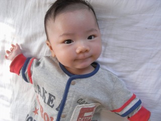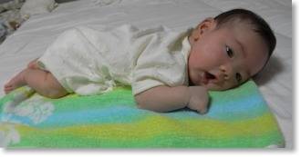 おととい、保健士さんが自宅に来てくださりケンタンの健康チェックをしてもらいました.横浜市では 希望すれば保健センターの方が自宅に訪問してくれる制度があります.(母子手帳についている申請ハガキを投函すればOK)体重も順調に増え健康状態も良好といわれ 一安心.ウンチが下痢っぽいので相談したら「母乳で育っている赤ちゃんのウンチは カボチャのペーストみたいな色でオムツを開くと お池のように溜まっているもの.」 つまり ケンタンのゆるゆるウンチは問題無いものでした.保健士さんと 自宅で一対一で話が出来るのでゆっくり質問したり他の赤ちゃんの話が聞けたり とても有意義な時間が過ごせました. 始めは申し込むのをためらっっていたのですが お願いして良かったデス. 1ヶ月も過ぎたので 寝返りの練習方法も教えてもらい、先ほど試してみました.よっこいしょまだ おぼつかないのですが 「一生懸命がんばっているゾ」的な 顔をするのが 愛らしいデス Home かわいい赤ちゃんがいっぱいの 育児ブログはこちらから(byブログ村)