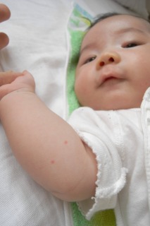 夏が終わり 油断をしていたらケンタのプニっプ二の腕に 蚊がとまっていました.一瞬 叩こうとしてしまい、あわてて追い払いましたが、しばらくすると ひじの近くに赤くポツっと 蚊に刺された跡が現れました×2見るからに とっても美味しそうなケンタの腕…蚊も 私でなくケンタをチョイスするんですね.赤ちゃん用の虫さされの塗り薬も無ければ キンカンを塗る訳にもいかないので綿棒にマキロンを染み込ませ ちょんちょんと消毒をしました.腫れ上がったり 特に痒そうにもしていないので 一安心.でも そもそも「蚊に刺された」って認識があるのかしら? おまけに このアングルからの顔ったら…たまりませんね! Home かわいい赤ちゃんがいっぱいの 育児ブログはこちらから(byブログ村)
