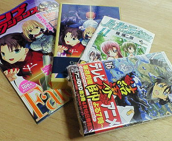 「コンプエース」 最近ずっと買ってたので、つい購入しましたが今回Fateスティックポスターは無いのね その代わりといってはナンですが、Fateプレミアブックが付録です・・・が、キャラクター紹介の順番に文句を言いたい まず最初が士郎・隣がセイバー、これは仕方ありません。でも凛の隣に何故桜そこはアーチャーのポジションでしょうっしかも、次ページはイリヤ&藤ねぇ、その隣でやっとアーチャー(でもライダーと一緒)・・・なんじゃこりゃぁぁぁぁ!!!!マスター優先?(でも藤ねぇマスターじゃないし!)それとも人間優先なの???(ヤツを人間の括りに入れるのは不本意だが)どうせなら人気投票の結果順にすればいいのに くそぉぉぉ・・・編集者、呪ってやる・・・・「TV Bros」 投稿欄で”化粧品のCMで安田成美が「生まれ変わったら歌手になりたい」と言ってるが、『風の谷のナウシカ』は無かった事にされているのでしょうか?”というのがありました。 私だけじゃなかった もうね~何度TVに向かってツッコミ入れたことか!「(普通の)歌手」じゃなくて「(歌の上手い)歌手」という意味かしら?(^□^;) 記事は”春の改変期に『ナウシカ』を放送して欲しくなってしまいました”と続いてますが、ナウシカ見ても、あの歌は流れないんじゃなかったっけ?