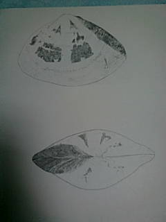 昨日ハマグリについて調べました もーなんてゆーか、かなり調べました・・・暗記するくらい 私が調べごとで暗記をするとゆぅ事はかなり珍しいことなのですww 今実験でハマグリを使っていることもあり、ちょっと興味もあったので楽しみながら調べました いい年した女が1人、薄暗い部屋(電気つけてなかった)でハマグリの事調べながらうふふふ、あははと笑ってる姿ってそーとー不気味だよね エビ(食用)とか貝とか変って訳でもないけど、あんまり『かわいぃ~~』って言われないよね~? でも動きとか見てたらすごい楽しいよ で、等のハマグリ達はいいんだけど、実験がめんどくさい 今はハマグリのスケッチしてるんだけどスケッチって アホみたいにめんどくさいよ? 何がめんどくさいかって、 それは ・・・・・点・・・・・ スケッチ・・・それは腱鞘炎への近道 スケッチの極意 スケッチについて (1) スケッチの意義 1.観察が正確かつ詳細となる。 2.観察眼が向上する。 3.後日のための参考記録となる。 4.細胞などの立体的構造の把握と理解。(2) スケッチの方法と注意点 1.紙は上質がよい。HB程度の鉛筆書き。 2.顕微鏡の右側に紙を置き、左目で顕微鏡を覗き、右目は開いたままで描く。 3.高倍率の場合は、微動ネジを上下させながら観察し、常に立体像を把握しながら描く。 4.鉛筆はよく尖らせ、明瞭な線描きとする。科学的描写に心がけ、芸術的デッサンのようには描かない。 5.大きい図を心がけ、細部まで正確に描く。 6.重なった構造部分や立体像の裏側部分の表現には破線を用いるとよい。 7.図には陰影をつけない。立体感の表現には細点を用いる。 8.日付、気象条件、実験項目、材料名、構造物の名称、長さを表示するためのスケール(mm,μmなど)考察、感想等は漏らさず記録する。 ほらめんどくさい 普通に絵を描けとかだったら喜んで描くけど・・・上の7番注目 7.図には陰影をつけない。立体感の表現には細点を用いる。 細点を用いる。 これです。 我々理系の学生を苦しめるのは 地獄です。 点地獄と呼んでいます。 スケッチが始まるとしばらくして、けたたましい音が実験室中に響き渡ります。 みんなどぉすれば点が少しでも楽に打てるようになるか必死で考えます めんどくさがりな私は点を打つ手を止めてまで考えます・・・(-_-)やれよ しかし手段は一つ、 打つしかないのです(泣) 上がハマグリ外観1・下が蝶番側から見た物(両方未完成) 拡大図 しかも今終わらないのでお持ち帰りで作成中↓↓ ハマグリさんも一緒 これからハマグリをさらに5枚? クルマエビを8枚だったかな・・・ 考えるだけで頭痛くなってきた・・・。 今から点打ち頑張ります 研究室の魚 なんだろこれ・・・??