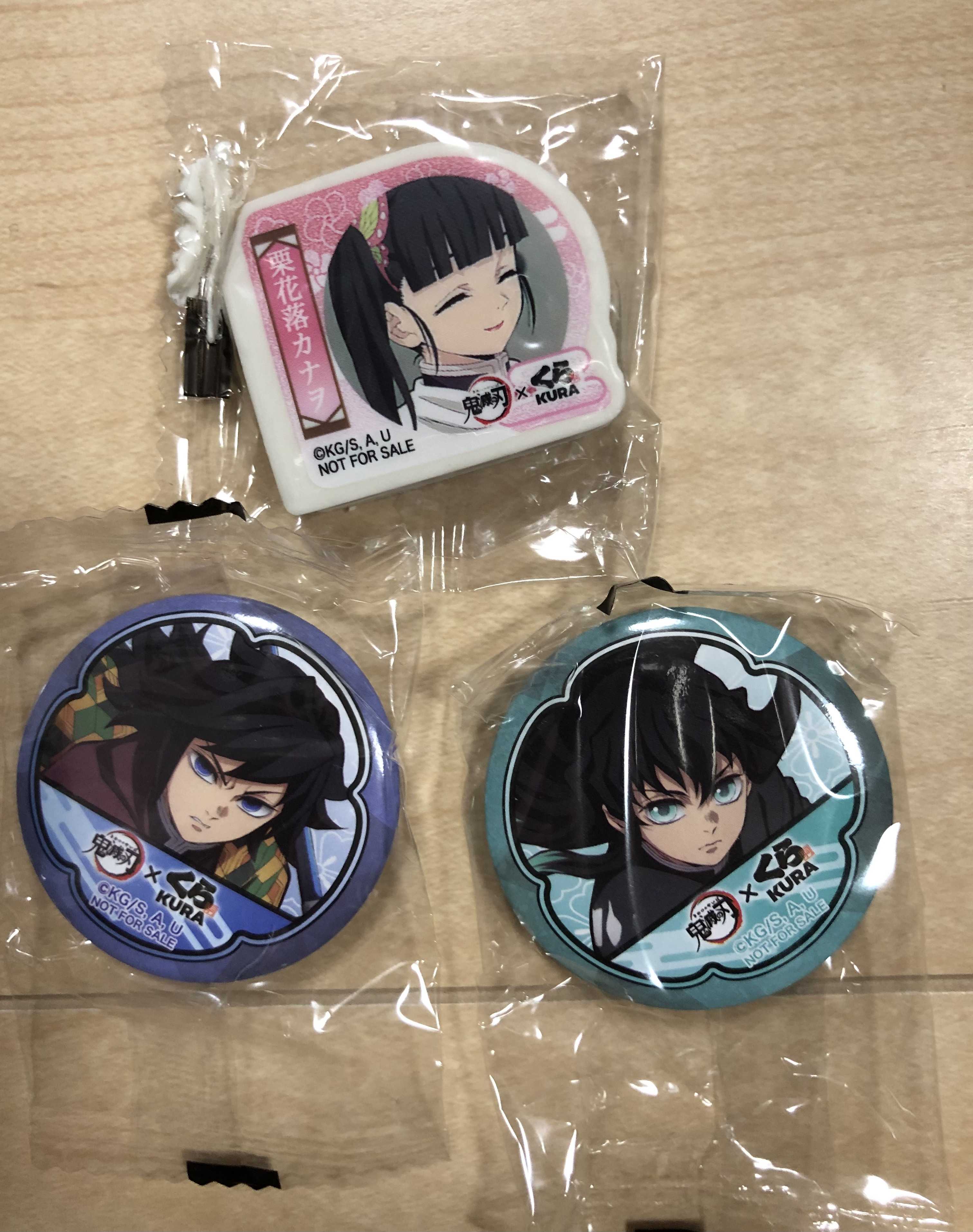 カナヲちゃんの消しゴム・無一郎くんの缶バッジ・義勇さんの缶バッジが出ました。