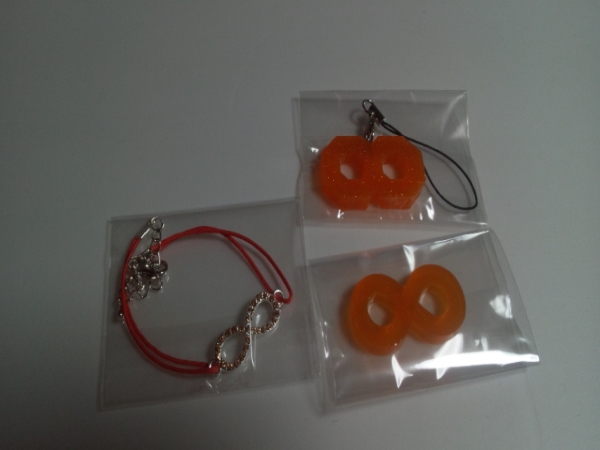 こんばんはさて、友達が∞マークのかわいいチャームを持っていてどこで売っていたか聞いてみたら個人でネットで販売している人がいると知り、早速検索してみましたお~かわいいといっぱい欲しいものがありましたがこちらを購入暗くて見えにくいかもしれませんが・・・1つはストラップの加工をして頂きました∞マークの形状も丸っぽいのか角っぽいのか選べてこれも迷いましたがもうこの方辞められてしまうそうなので購入できて良かったですさて何に着けようかな