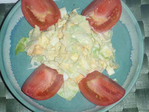 実は明日から、毎年11月恒例の「おっさん5人で行く一泊二日の旅」なんだよね。そこで冷蔵庫に余っている食材は出来るだけ処分してしまいたい。昨日だったっけ 卵がダブつき気味だと書いたが、その卵を1個を残してゆで卵にして、キャベツ(一昨昨日のちゃんぽんで角切りにしていた分)とオニオンスライスで混ぜて、塩コショウとマヨネーズで和える。トマトも残していてもしょうがないので全部使う。昨日作った白菜(とベーコン・にんじん・タマネギ)のコンソメスープとか、今日の昼飯で余った鶏のから揚げ2個とか、少しずつ余っているので、今夜はこんなものを食っておこう。ゆで卵のことをうで卵と言うのは方言なの うだるような暑さとか使うよね。おっさん5人の旅なので、皆さんは「どんだけただれた旅だろう」とお思いだろうが、皆さんが思っているより健全かつ観光好きで、観光地を何時間でも歩きまわるのを厭わない。今年の目的地は熊本市で、熊本市は隣県だし俺は若い頃2年住んでいたことがあるんだけど、太平燕を食った記憶がないんだよね。(記憶がないだけで、当時はB級グルメブームでもなかったし、忘れているのかも)今回は大平燕を食う旅です。