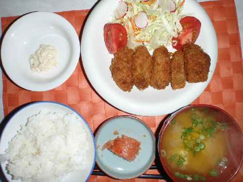お袋から天神のデパートメントストアに買い物に行ってくれと頼まれていたんだよね。(そもそも天神がわからんよね まあ、福岡都市圏を代表する繁華街だな。)ところで、俺なんてデパートで買い物をした記憶はほとんどないんだけれど、俺のお袋の世代にとって天神のデパートと言うのはものすごい神通力があるものらしい。「ああ、野球を見た帰りに買ってくるよ。」と気安く約束していたが、CSに弱いホークスがなぜか全勝突破してしまい、俺の第4戦のチケットは無駄になったが、約束の買い物だけは行かなければならない。そういうわけで貴重な休日、日曜日かつホークスCS突破記念セールで店内がごった返す中、お袋に頼まれた物を買ってきた。ところで、お袋の世代はデパート大好きなんだけれど、クレカの中に保有するポイントも半端ない。びっくりするようなポイント数を持っている。「貯まっているポイントはあげるから何か好きなものを買って来い。」と言われても、デパートに俺が欲しいものは何もないんだよね。一応紳士服のフロアはあるけれど、今どき誰が着るのっ て高級服ばっかりだし・・・俺ごときが着る服はユ○クロで、いや、ディスカウントストアで十分だし。実は俺が今、是非欲しいのはそこそこのランニングシューズなんだけれど、そんなものはデパートにはない。(婦人物はあるような気がする。)デパートの紳士フロアって、一応スポーツ用品コーナーもあるけれど、それはゴルフ用品・ゴルフファッションと、あってもウォーキングシューズ程度なんだよね。デパートを利用する有閑マダムのご主人がたしなむスポーツと言えばゴルフで、後は医者に強制されたウォーキング程度なんだろう。(デパートには外商部というものすごいところがあって、お得意様が注文すれば、 核兵器と人体以外ありとあらゆるものを調達してくるかもしれないが、俺には関係ない。)前置きが長くなったが、そういうわけで何も買うべきものがなく、ポイントで地味にカキフライを買ってきた。いわゆるデパ地下惣菜。写真貼り忘れていたしかも200g買った内の半分は実家に置いて来たので、俺の取り分は100g500円程度。(いや、500円の交通費が掛かっているんですけれど・・・)一昨日作ったキャベツとタマネギ・にんじん・タマネギ・ラディッシュの千切りサラダ添え。豆腐の味噌汁・ワイン漬け辛子明太子。500円/gを超えるカキフライなのに、タルタルソースが小袋に入った既製品なのが、一応その店のオリジナルでブランドがプリントされているとはいえ納得がいかない。こう、なんというか、タルタルはカキフライの横に、大さじでドロップして欲しいみたいな。(もちろん家に帰ってレンジでチンの必要があるから別添えになるだろうけれど、 長期保存の小袋ではなく、今日作った生タルタル希望ってことね。)