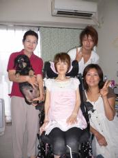 今日は同病のまっちゃんが会いに来てくれた出会いはやっぱりブログ。去年、私のブログにメールをくれて、友達になった歳は1つ違い。 家も近い。ようやくご対面やっぱり号泣。まっちゃんもホロリそれを見てさらに号泣(笑)同病の友に会うと、会えた感激と、いろんな思いがこみ上げて、涙になる。決して悲しい涙じゃないまっちゃんはご両親と来てくれた。明るい方で、うちのお母さんと親同士のトーク炸裂!私とまっちゃん、少々耳痛し(笑)でも患者家族にも交流はゼッタイ必要だ!患者が仲間と分かち合いたいと思うのと同じで、家族だって不安やグチを分かち合う場はあったほうがいい。胃ろうの実演やお風呂用の車椅子を見せたり、ヘルパーさんや道具給付の話しなど情報交換もたくさんした。それにしても、楽しい時間ってあっという間。何時間あっても足らないねでもまた遊ぼうね今度は美女会のみんなも一緒にねーーー