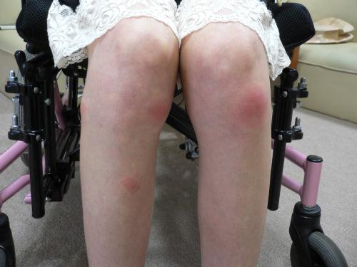 今日、クリニックで動脈から採血した前回手首から採ってエライ目にあったから、今回は最初から右足の付け根からにした。採ってるときは、刺したところよりヒザあたりの動脈がピキッ!ってつっぱったことが痛くてさ音が聞こえたもん(笑)血管がブチ切れたかと思ったよでもこの痛みでは泣かない。さぐられたから相当痛いけど、恐怖感や不安感はないからだと思う。ただ・・・足ならあとが痛くないと思ったのに、ものすごく痛いのーロキソニン飲むくらいなんだよー。モモに手を置いてるだけで痛いのー。足マウスも足リモコンも歩くのも寝返りも痛いよーーー超生活に支障をきたしてるよ。サイアクーー。こんなに痛いなら、使わない手のほうがマシだーーー。しかも、結果は悪いしさー4月は pCO2は46.1 pO2は97.3mmhg だったのに、今日は pCO2は48.8 pO2は93.2mmhg上がった上に下がっちゃっちゃーだめじゃん!カフアシストの効果ナシじゃん2万5千円/月も払ってるのに・・・。でも先生は「50いってないから大丈夫だよ」って。上がったことを気にしてたら「まー、たいして変わらないよ」だってー。そしたら、50も48も変わらないってことにならないかい?(笑)またBiPAP長時間がんばるぞっ