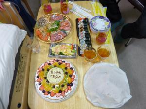 今日、ヘルパーさんが1人辞めてしまった。日曜日の夜、来てくれていた。2年間くらいかな。彼女とはなんか最初から気が合ってね。好き嫌いの激しい私にしては、すごくめずらしいことなのだ(*^m^) やっぱり相性だよねぇ。彼女とはこれからもつきあっていきたいと思っているというわけで、今日は私の友達を呼んで送別会をした。友達にはまったく関係ないけど(笑)でも日曜日に集まることが多かったので、結構すっかりなごんでいたヘルパーさんも2人誘って来てもらった。みんなでワイワイしたかったんだ~食べ物は友達が用意してくれた。男子のチョイスとは思えないセンスの良さだわ!パン屋さんはこんなパイを作ってきてくれた!すごいでしょ~新作『ロシアンルーレットパン』おいしい上に楽しいパン。この中に3つ中身がヘンなのがある みんなドキドキしながら食べていた。見てても楽しかったよ(*^m^)番号がついているのは、私も参加できるように。パン屋さんのは私が選ぶの塩キツそうだったな~。参加できなくて残念だわ~(笑)私からのささやかなお礼に楽しかった!これからもよろしくね。そして、ちっとも関係ないのに(笑)つきあってくれてありがとう今日のために塗り直してもらいました。,,,見えるかな?キティだよ