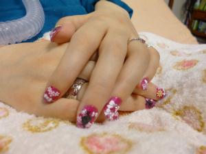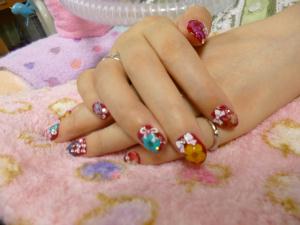 今の爪です誕生日に友達がくれたネイル用のドライフラワ-です友達も見てくれました