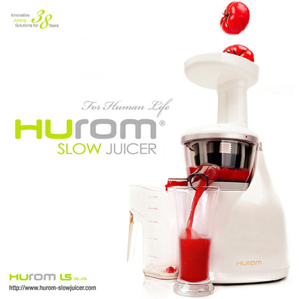 HUROM HU-400 [ヒューロム スロージューサー]【送料無料】HUROM HU-400【送料無料】★ 世界初の特許技術で、素材まるごと生しぼり!ヒューロム スロージューサーは石臼式の低速圧縮搾り。低速回転によって摩擦熱の発生をおさえ、 熱に弱い栄養素や酵素の破壊をおさえて、美味しい栄養たっぷりのジュースをつくることができます。★ 世界初低速圧縮搾り「LSTS方式」自然の素材の味と色、栄養素を保存。1分間に80回転の低速で搾る技術が、自然のままの色、味を楽しめるジュースを、搾ることが可能になりました。低速により、 栄養素もそのまま保存できる技術は世界初の特許、新技術です。★ 分離排出方式 より健康的なジュースのために。果物や野菜の繊維はジュースとは別に排出。そのため消化吸収のよいジュースが搾れます。また果物や野菜の酸化を抑え栄養を破壊せず、細胞内栄養、ビタミン、ミネラル、ファイトケミカルも十分に摂れるすぐれもの。排出された繊維部分は、繊維質たっぷりなので、料理に活用して摂取できます。★ 静かな動作30~50デシベル低速モーターを使用しています。★ お手入れ簡単!搾った後は水を流し込むだけ。分解して洗う必要がありません。★ 安全設計!ヒューロムスロージューサーは石臼式なので刃を使っていません。小さなお子様からお年寄りまで、安心してご使用できます。※日本特許番号 特許第4580408号-----------------------------------------【商品スペック】-----------------------------------------* 本体サイズ(約):幅16.0×奥行23.3×高さ40.5cm(ドラム装着時)* 重量:約6.2kg(ドラム装着時)* 消費電力:150W* 定格使用時間:30分以内* コード長:約1.48m* 付属品:押し棒、豆腐用型、押し板、搾汁用受け容器、固形成分受け容器、洗浄ブラシ、アイデアブック-----------------------------------------さらに詳しい情報はコチラ≫メラノーマ・癌・ポリープの症状と治療