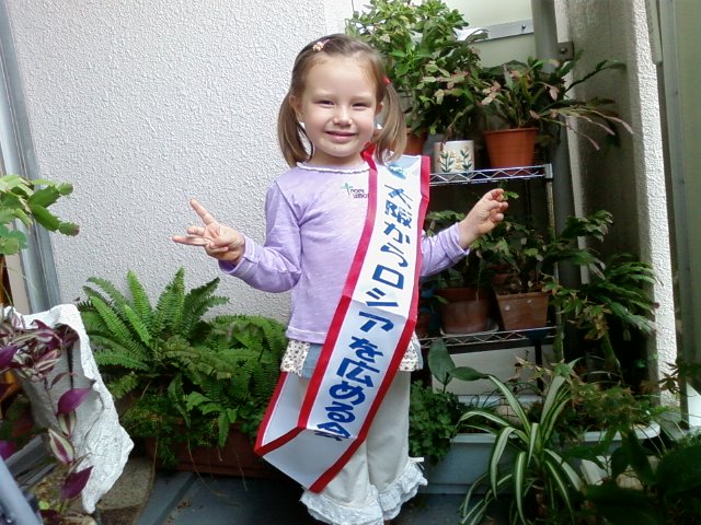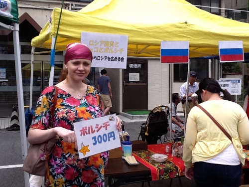 6月5日には和泉市に行われたワールド・フェスティバルに参加しました。ロシア雑貨店を出しました。ロシアのお土産の中には一番人気が集まったのはやっぱりマトリョーシカでした。私が驚いてたのはあまりチェブラシカのおもちゃが売れなかったことです。その他には名刺入れ、ロシアの塗り絵、編み物、テーブルの飾りなどがありました。5 июня в городе Идзуми проходил "Международный фестиваль". Он проходи ежегодно. Собираются иностранцы ( в основном азиаты) и устраивают небольшой палаточный рынок, где продают свою национальную еду (она приготавливается прямо у вас на глазах), а также национальные сувениры.В этот раз Огромной популярностью пользовалось каре с лавашом, которое готовили индийцы. Выстраивалась длинная очередь, желающих попробовать настоящее индийское каре. Лаваши они пекли прямо в печке, которую не поленились притащить с собой.Мы решили в этом году тоже поучаствовать и выставили небольшую палатку с русскими сувенирами (хотели пирожки настряпать, но, из-за неустойчивой сырой японской погоды в июне, которая могла бы повлиять на качество пирожков, мы не решились). Как всегда, популярностью пользовались матрешки. К моему изумлению, сувенирные чебурашки практически не привлекали внимания. Оказывается, Чебурашка не столь уж известен в Японии, как нам казалось.Рядом с магазинчиками была сооружена небольшая сцена, на которой показывалось все, кто на что горазд - и национальные танцы, караокэ и пр. Наша Соня набралась смелости и сыграла перед всеми несколько мелодий. А я спела "Катюшу", чем немало порадовала японских слушателей.ソーニャの発表会緊張しなさそう。頑張ってや!!!А это уже я подключилась! "Давай -давай, зажигай!!!"手拍子で「カテューシャ」の歌をみんなで歌いました。