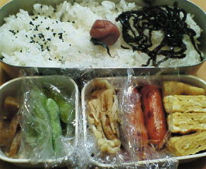 昨夜の外食が効いていてお腹が重たいです今朝のお弁当おかず容器大:玉子焼き(味付け済) ウィンナー炒め(ケチャップ味) けのき(レンジでチン^^すりゴマ&醤油味) 容器小:枝豆 味噌漬け 枝豆、二人とも大好物なんです朝ごはん 主人は月見うどん(私は卵抜き) 白菜+ネギ+とろろ昆布主人はこれに白飯食べてました。。。彼の言葉に食欲不振と胃もたれは無いらしいです一人のお昼ごはん納豆そば 茹でたそばに納豆と海苔をかけそばに付いてきたつゆをかけただけです^m^3時に食べました。。。おやつ?裏にするほど酷くも無く、表に昇格