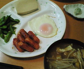 勿論主人のです車の運転が仕事なので眼鏡は良いものをと結構頑張りました。昨日出来上がった旨連絡が入ったので、本日取りに行ってきます今日は珍しく一人の朝食UP うどんです 具材は干ししいたけ、とろろ昆布、ほうれん草、ネギです。そして主人帰宅後の昼食プレート左上:ほうれん草と枝豆 右上:わさび漬け(主人のみ) シュウマイ 中央:ベーコンエッグ ジャガイモと玉葱の味噌汁お味噌汁を写そうとするとおかずが貧相に見えますねそして夜ごはん 鶏ささみのフライ おからの煮物 大根&アゲの味噌汁メタボメニュー「フライ」に対抗しておから(大豆)で吸収。。。意味不明