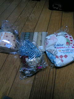 今日、名古屋のデパートで開催されている「野原チャック&チャックスキルト展」を見に行ってきました。どれもキルティングが細かい~わたしはまだまだ・・・です。まぁ比べる気はないんだけど現実を知った感じです。で、同時開催のキルトショップバザールでイッパイ買い物してきました。 他にもたくさん買いました。
