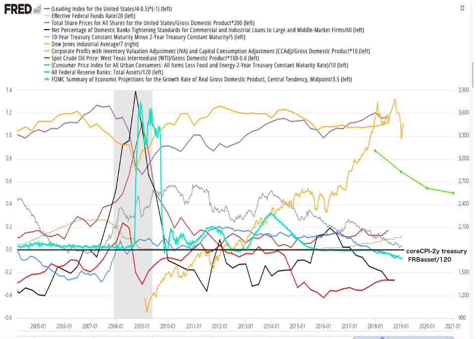 FRBの資産減少を 1/120すると「core CPI-2 year米国債利回り」と一致しているこれに気がついている人はいるんだろうか?短期債券が有利に見えるけどなあ、、、はてなあ