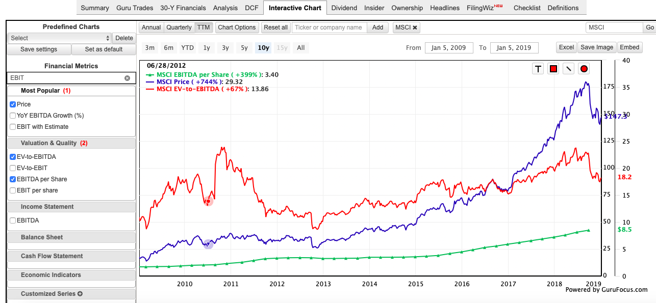 最近、いろんな米国株ブログを巡っているんですが、米国株の簡易買収倍率(EV/EBITDA)を調べてみましたMSCIは15倍以下でエントリーしたい感じですねえVは17−18倍くらいでしょうか?KHCは現在の株価で13倍ですか、、、GISは10倍くらいが望ましい感じIBMは7.5倍くらい?DISは10倍以下かなあ、、、