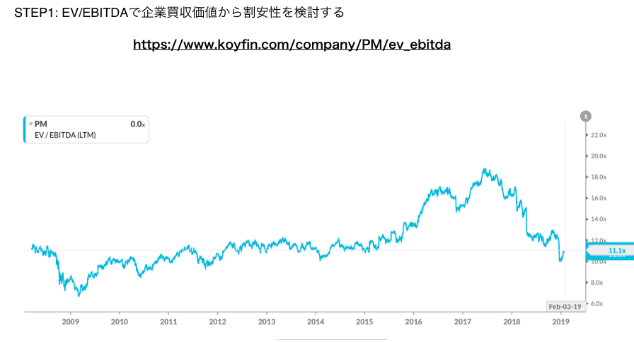 逆張り銘柄選びの4ステップ1)簡易買収倍率:EV/EBITDAで長期的割安性を調べる2)モーニングスターでフェバリュー以下であるか確認する3)信用格付けを調べておく4)企業財務諸表を読んで、cash conversion cycleを見ておく以下はPMの例です4)企業財務諸表を読んで、cash conversion cycleを見ておくPMはstep3までは合格なんですが、step4でCCCが長いんですよねえ、製品が現金化するまでが長いので、金利が上がると困りますよねえこれは日本タバコも同じですが、180日とタバコ業では短い、ユーロ建てや米ドル建の社債発行で短期債務を長期債務に切り替えていますけどねえいっぽうコカコーラはマイナス190日なので、製品を出荷する前に、現金で回収しているんだよなあなのでタバコ産業への投資は控えめにしておきます