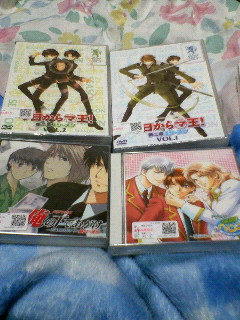 僕って結構甘い。悠季です。いや、ツメが甘いのだよ。今日は名古屋の専門学校へシスアドのセミナーを受けに行ってきました。朝。10時からということで、結構時間に余裕がありました。けど、ちょーっと遅かったかなぁ、家、出るの。最寄のI駅にて。ぁ、そう言えば、カード買わねば・・・と窓口へ。悠「あのー、すいません・・・・・・?」(財布のカードを見る)悠「ぁ、トランパス下さーい」また、カードの名前忘れたよぉぉぉ!!(またかよトランパスとは・・ユリカやパノラマカードとも言いますが。名古屋の地下鉄や電車、バスとかで使える、優れものなカードです。改札を通る時は僕は大体コレを使います。まぁ、JRとかは使えないんだけどねぇ~・・・そんで、僕はあえて、名古屋へ地下鉄で行ったのですが・・・それが間違いだったようです。乗り換えの時に電車1本逃した・・・・;;地下鉄だし、すぐ来るだろうと思ってたけど、休日ダイヤって意外と少ない・・・。調べてみたら、名古屋へは始まる10分前に着く・・・!?もう本気で焦りました。遅刻なんてありえない!しかもこうゆう場で!そりゃもう走ったとも。無駄に汗もかきましたとも。何とか場所には5分前くらいにつきました。エレベーター内で一緒にいた講師らしき人に「まだ始まってませんよね!?」と聞いてしまうほど、僕は焦っています。(この人は恐らく他の講座の講師かと思われる。)「10時から?そんなに急がなくてもまだまだ大丈夫だ、ハハハ。」と笑い飛ばされましたが。そして別れ際に「頑張れよー」と一言、激励もされてしまいましたが。そんなこんなで着いたセミナーの教室。やっぱり人は既にほとんどいた。軽く見回してみたが、同じ部活の女子達が見当たらなかったので、一応空いてた1番前の隅っこの席に座ってみた。いや、別にすぐにその女子達は見つかったのだけど・・・まぁ、いいやって・・・。その後、先生も来たのですが、ドアの前で受講者らしき人が躊躇してます・・・。見覚えがあるかと思えば、パープル君だ!(久々登場)いや、僕としては最近は紫よりピンクなイメージがある・・・。(ぇなんだぁ~僕より遅い人いるじゃない!と、ちょっとホっとしてみたり。で、あぁやっぱり服のセンス良いなぁ、と思ってみたりもしたのですが、・・・って!何か僕の着てるシャツと似てないですか!?今日の僕は、白のTシャツの上に青系のシャツを着ていたのですが、パープル君の着てる、紫っぽいシャツが似てまして。パっと見、色違いかとも思ってしまった。まぁ、もちろん、全然違うと後でわかったのですが。でも、本当に一瞬そう思ってしまったのよ。いや、特に深い意味はないんですが、何か自分と同じモノを何処か他の場所で見かけると、「おお!」ってなっちゃうんですよ(笑そんなこんなで授業スタート。そこで気づいた。勉強しに来たのに、ノートどころか、メモする紙さえ持ってきてない・・・!!!(阿呆幸い、授業で使った冊子の後ろに白紙ページが結構あったので、黒板写すことはしっかりできましたけどね。意外と、早く時が経っていったねぇ~・・・教え方が丁寧で、当てられる心配もないし、ぼけ~と聞いているだけでいいから気が楽でした。そんなこんなで昼食タイム。さっさと弁当食べて、トイレ行って。ふと、携帯を確認すると、メル友さんからメールが着てるではないか・・!ということで、午後の授業が始まるギリギリまでメールやってました(笑別に暇つぶし用の本も持ってたけど、メールやってる方が、やっぱり楽しかったですv(いや、どっちみち両方やってたんですけどね。メール来るまで本読んでたんで。)そんなこんなで、午後の授業も終えました。外は見事にザーザー降り・・・。本当は、色々寄り道したかったんだけどな~と、悲しく思いつつ、まぁ、すぐ近くのアニメイトなら!と、とりあえずアニメイトへ。その後、・・・結局、名古屋から久屋大通行って、バッチリ寄り道してきました☆(ぁこれが今日の獲得品。この画像のモノは全て中古。・まるマDVD2本・俺下とヘヴンのドラマCD(ぁ、略しやがった・・!今日は荷物が多いので、控えめに。いつか、また大量買い行くゼ!そんなこんなで重い荷物を抱えて帰るのですが、此処でも・・・。傘はしっかり持ってきてるのに、自転車のかごに入れる荷物用の袋を持ってくるの忘れる・・・という、ツメの甘さで、最後の最後まで災難続きでした。明日は完全なお休みだ!部活もない。こんな時こそ・・・宿題・・・なのかな。まぁ、今日は勘弁してね(笑よし、ドラマCDの続き聞くぞ!~♪「Confusion」Janne Da Arcそう言えば、某番組の「卒業ソング」のランキングで、ジャンヌの「振り向けば・・・」が2位だったとか!さすがやねーv 僕にとってはもち、1位ですけどねぇ(笑