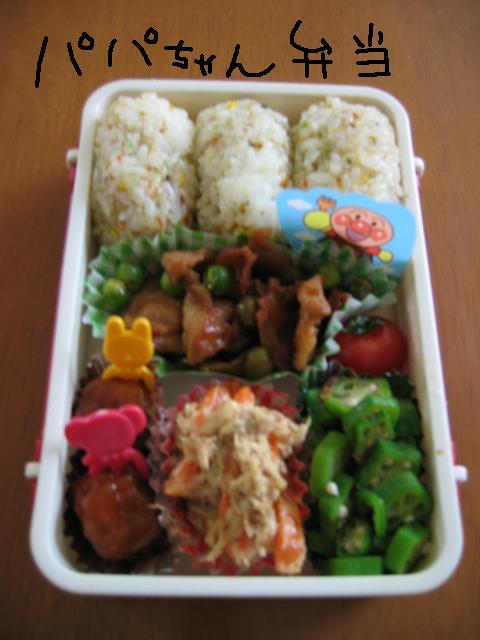 1ヶ月ぶりに久々のアップ~~( ´艸`)ムププ♪いつも訪問頂いてます皆様、ありがとうございます。ずぼらな管理人ではありますが、また遊びに来てくださいね(^O^) ・たこさんウインナー・カボチャの煮物・さやえんどうの御浸し・パプリカの茹でたもの・鶉のゆで卵・ちくわの炒め物ー薄口醤油味(ママちゃん弁当のみ)完食でした!(^^)!一番好きなのは、たこさんウインナーらしくてなんとかパプリカも食べてくれました。今まで、残したのは・・ブロッコリーの茹でたのにマヨネーズをつけたもの。シチューとか、お好み焼きに入れると食べるんですけど・・お弁当だとダメみたいです。
