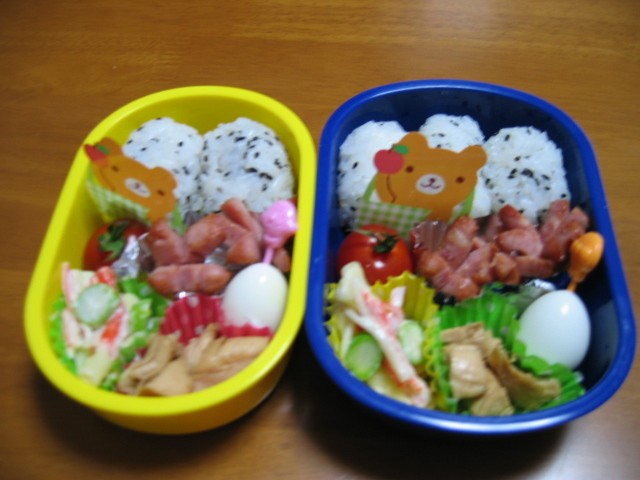 週に1回のお弁当練習日がやってきました~(●^o^●)ちょっと自信作かな~??( ´艸`)ムププ 写真ものせてみました・ごま塩おにぎり・たこさんウィンナー・鶉のゆで卵・ささ身の砂糖醤油煮・マカロニサラダ(かにカマ・りんご・茹でアスパラ)・プチトマト*ポイントはクマさんのバランです(≧∇≦)とっても喜んで食べてくれました。嬉しかったです( ´艸`)ムププ 画像が大きすぎました^_^;編集画面で、画像だけを入れ替えって出来ないんですね。一度,"画像を埋め込まない"にしないといけないんでしょか?