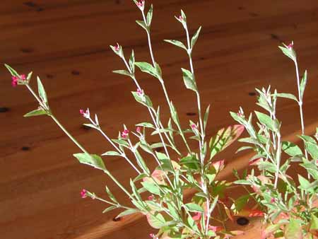 千日小坊は「多年草」なので、花は来シーズンまで待てばよいかと諦めていたら、室内でスクスク伸びて、今ごろ花を着けた。この分では春まで咲き続けるのだろう。しかしスイスイとした枝振りから、徒長しているようでもあるが。
