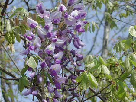 写真をよく見ると、絡みつかれた落葉樹(シデ?)にも花序がぶら下がっている。