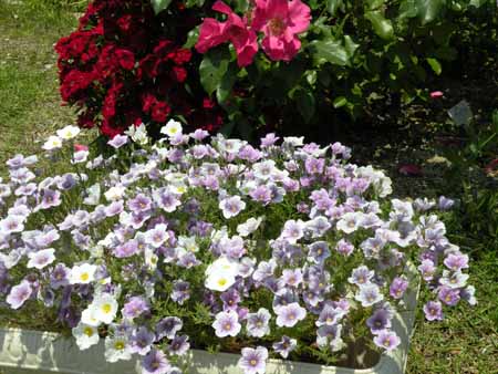 本当は純白のニーレンベルギアが好きなのだが、なぜか去年は、T社にも、S社にもそれがなかった。やむを得ず買ったのが、T社の「スプラッシュマウンテン」。袋の写真からすれば、白花種と紫花種の混合と思ったが、そういう面があるものの、1株で2色の花を着けているものもあった。