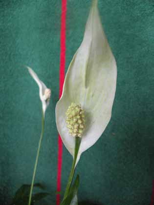スパティフィラムという名称は、サトイモ科スパティフィラム属に由来するから、生物学の呼称。そして「属」と言うことになれば、多様な仲間がいる気がするが、ネットでは専ら写真のような白い「花」。