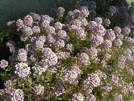 そんな印象を与えた筆頭は、このスイートアリッサム。適切な肥料などという要因もあるかもしれないが、ふっくらと咲き上がっている。