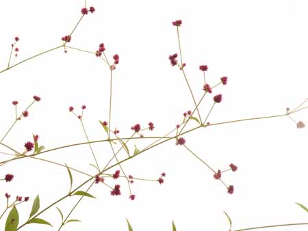土の関係か、花を着けた枝がヒョウヒョウと伸びて、空中をさまよっている。それを捉えようとしたのが写真。あたかもスキャンしたような仕上がりになった。