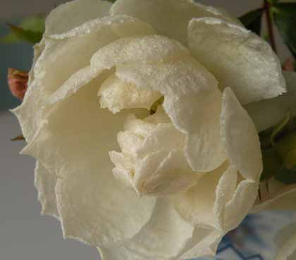 しかしこれは、本物の「アイスバーグ」という品種。温かい日射しや霜が降りるお天気が繰り返しした結果こうなった。意地悪するつもりはなかったけれど、室内に取り込んでもこのまま。名前のとおり、すっかり「凍りついて」いる。