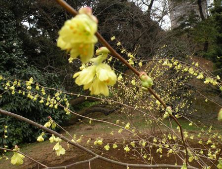 写真のヒュウガミズキは、小高く盛った小山の上に植えられていた。自由奔放な雰囲気がよい。3月17日、新宿御苑にて。