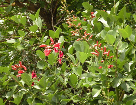 花形からしてマメ科だが、赤い花は珍しいのかな。こういう花を見ていると、気候の差を強く感ずる。