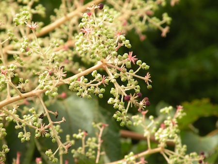 遠目には白い花が密集して咲いているように見えるが、「望遠」で写真を撮ると、ほのかに赤く色づいた花が咲くことを知った。ちょっと可愛い。
