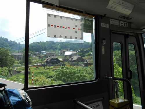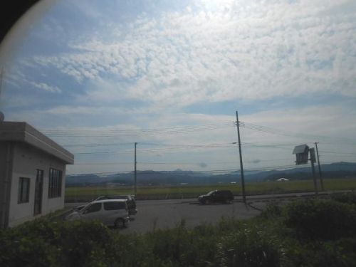 今年も行きました。 【2】 のつづき。宿坊との別れの朝。お部屋の牛の置物に、ばいばい。羽黒山への未練たらたら。バス停のあたり。また、出羽の古道風、彫りもの。扇。羽黒山を下りる道から、月山。羽黒山、ばいばい。幅の狭い山道を、くねくねとゆく。バスに乗った、羽黒センター~(羽黒山山頂 経由)終点・月山八合目まで1時間半くらい。忙しいアイドルは移動時間に眠っておく。また来ることができた♪