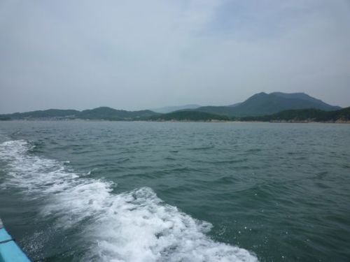 その壱 その弐 その参 そのよんその幾つまでつづくのかなーうどんランチのあとはモーターボートで瀬戸内海クルーズ♪「瀬戸の花嫁」の舞台になったらしい島を横目に見たりして。そういえば小豆島に渡るフェリーから見えた、小さな島はセカチュー(映画)に無人島として登場した島みたいだ。小豊島に到着。流れでオリーブ牛に会いに行くことになったはいいが山奥に住む何とか族の村へと続くかのような(?)すごい道。手振れ補正機能、敗北。足を消毒して。。オリーブ牛に、こんにちは。可愛いし、とっても美味しいらしい。。牛さんの住むあたりからも静謐で美しい瀬戸内海が、よくみえる。島内を、お散歩。16世帯くらいしか住んでいないらしい、小さな島。小豆島に戻りますだいぶ潮が引いてきていることに船乗り場で気づかされる。もうすぐ干潮の時間。高松市の五剣山と屋島は遠くからでも目立つなぁ。セカチューにも登場していた。奥の左、山頂付近が、ぽこっとしているのが五剣山。奥の右、テーブルマウンテンっぽいのが屋島。那須与一が扇に弓射ったあたり。だと思う。。まだ、つづきます。