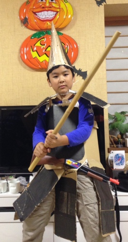 なんて・・・ひっさしぶりにブログアップしたと思えば、何シリアスになってんの???ですよねぇ~でもね、今年のハロウィンはなんだかいつも以上にしんみり・・・きちゃいましたよ。ニュースで流れる東京のハロウィンの様子に・・・この映像は本当に日本の映像なのかい???と田舎に住む私は言いたいのですよ。数年前までは、こちらでも徐々にハロウィングッズがお目見えするようになってやっと楽しくなってきたなぁ~と思っていたのにねぇ~あっという間に、ブーム去る・・・・ですよ。で、これって、日本各地でそうなんでしょ?と思っていたらですよ・・・田舎だけ・・・・去ってしまったのは・・・もうね、本当にうらやましい・・・一応やりましたけどね・・・ご近所の子達を誘ってね、ハロウィンパーティー!Trick or Treat もしましたよ。でもなぁ~やっぱりねぇ~すれ違ういろいろな人たちの仮想が面白いわけですよ。ハロウィンはね・・・でもすれ違えない・・・誰もいない・・・はぁ~やっぱりさみしいなぁ~まぁ、子供達はそんなの気にせず楽しんでくれたので良かったのですが・・・息子、今年はコスチュームを買って欲しかったようなのですが”高いから買えない!”との主人からの一声であきらめ・・・自分で作ってました!” 作れるじゃん! ” これの戦国武士・兜バージョンコスチュームが子供達に大うけ!お菓子を頂きに伺ったお宅のお母様達からも大絶賛!やっぱりね、買わなくて良かったわ・・・親ばかながら、本当によく出来てる!来年はどうなるでしょうねぇ~買いませんけどね、コスチュームは・・・・だから、また作ってね!来年も、田舎でさみしくハロウィンお祝いします!