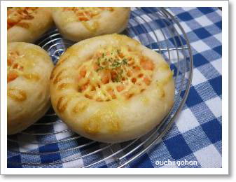 昨日の予告通り、今日はカレーパン作りました揚げるパンってやったことないから分からないのでもちろん焼きカレーパンにしました。上に乗っけたパン粉もこないだ作った食パンを冷凍しておいたのをすりおろして乗せてみました。お昼ご飯に食べたけど、すごく上に乗っけたパン粉がサクサクで結構おいしかったです~カレーが余ったときはこれもアリかもと思っちゃいました design by sa-ku-ra*